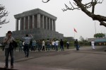 Bloques a Hanoi, nous faisons contre mauvaise fortune bon coeur et en profitons pour visiter les quelques musees ou monuments que nous avions laisses de cote jusque la. Ce matin aux aurores, nous sommes donc aller rendre hommage au heros de la nation vietnamienne: Tonton Ho! C’est une veritable institution, aucun vietnamien ne pourrait imaginer venir a Hanoi sans passer voir la momie d’Ho Chi Minh dans son mausolee. Il faut dire que la mise en scene vaut le coup d’oeil: un parcours labyrinthique, ou des gardes habilles tout en blanc vous rappellent tous les dix metres de marcher en rang d’oignon (pour une peu on se croirait a la maternelle), le tapis rouge pour entrer dans le mausolee, l’atmosphere de recueillement et de silence (dans une ville autrement hyper bruyante) et 9 gardes pour la seule salle ou repose la figure nationale!