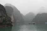Finalement on a le temps de vous mettre un petit mot avant de prendre le train de nuit dans 3h. On revient tout juste des 3 jours dans la baie de Bai Tu Long et c’etait… brumeux! Vendredi on a eu droit a 5h de bus pour rejoindre le port ou nous attendait le bateau, grace a une petite mesaventure: Apres nous avoir recupere a notre hotel, la (tres) jeune guide qui nous accompagnait a embarque les mauvaises personnes dans l’hotel suivant. Apres 10 min de trajet, ce couple australien a demande a quelle heure on serait de retour a Hanoi et quand la guide leur a repondu “Vers 18h dimanche”, ils ont ouvert de grands yeux car ils avaient reserve un tour a la journee… Donc retour a leur hotel pour les reposer et prendre le bon couple. Nous voila donc parti pour de bon a 4 touristes plus notre guide, une amie a elle et le chauffeur.