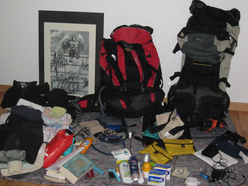 J-2:les sacs à dos ne sont toujours pas prêts, mais on prend la bonne voie. On a déjà tout rassemblé, acheté les médicaments manquants pour la trousse de pharmacie et rajouté 2 -3 trucs de temps en temps.