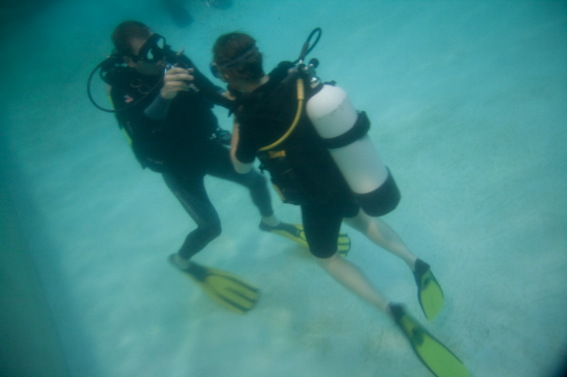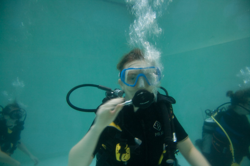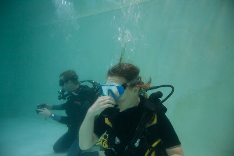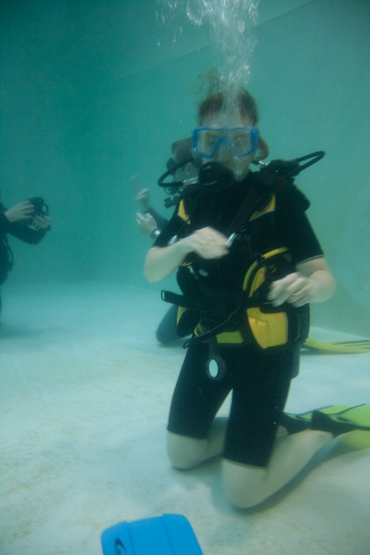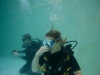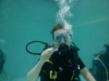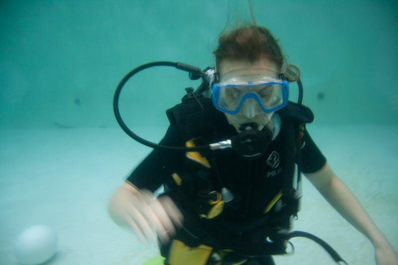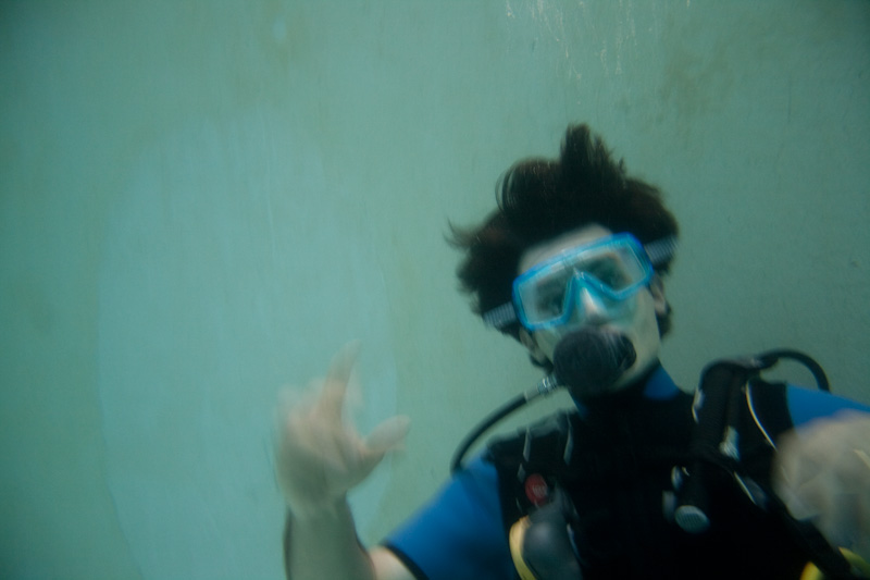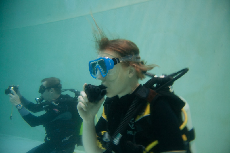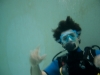 Ca y est, on est allé sous l’eau! Bon d’accord c’était encore loin d’un lagon des mers chaudes avec sable et cocotiers… c’était dans une piscine (un peu) chauffée de Kreuzberg avec carrelage et projecteurs. Ca a aussi été l’occasion de tester la poche étanche de l’appareil photo en situation plus concrete que dans la baignoire, donc voila les photos: