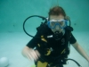 Bilan, les gens étaient sympas, c’était rigolo, on a joué au frisbee et au ballon sous l’eau mais Sev a finalement moyennement aimé la sensation… elle a décidé de rester plus proche de la surface avec masque et tuba 🙂
