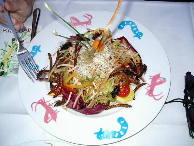 Un charmant restaurant berlinois ou le menu est composé de sauterelles, vers et autres grillons… Miam miam 🙂
