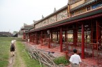 L’apres midi a ete consacree a la visite de l’ancienne citadelle imperiale et de sa cite interdite sous une chaleur torride de 37! Vieille de 200 ans, elle a subit les foudres de divers attaquants, les francais d’abord, qui ont rase quelques batiments et incendie la bibliotheque, les vietnamiens ensuite pour en deloger les americains, puis les americains pour la reprendre aux precedents (a coup de napalm). Autant dire qu’a l’heure actuelle la citadelle est un melange de parc verdoyant, de terrain vague, de chantier et accessoirement de monument historique. Si quelques pavilllons ont bien resiste, la plupart ont disparu et sont maintenant en cours de reconstrution. La visite alterne donc joli pavillon autentique, champs verdoyants, chantier bordelique ou l’on doit passer sous les echelles et pavillons flambants neufs… etonnant!